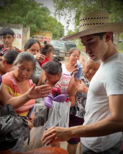 Poza Rica, Ver 18 de octubre 2025.— Rafa Alarcón, acompañado por un grupo de jóvenes voluntarios, participó en una jornada de limpieza y entrega de víveres en zonas afectadas por las recientes lluvias en los municipios de Poza Rica y Álamo.
