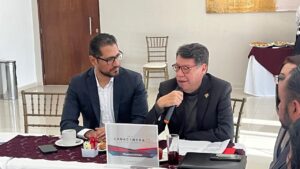 Presentes en esta reunión los empresarios: Mtro. Miguel Hernández Díaz, Consejero Nacional de CANACINTRA, Mtro. Jorge Rafael Pérez Moreno, Lic. Braulio Fregoso González, Lic. Quetzalcóatl Caiceros Arenas, Lic. César Romano Campos, Lic. Lucía Jarvio Jácome, Dra. Hadyt Pazaron Salgado, Lic. Alma Soledad Villanueva, Mtra. Rosalinda Montesano Delfín y el Prof. Felipe de Jesús Díaz Rodríguez, por mencionar algunos.